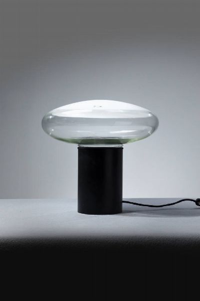Struttura in metallo verniciato diffusore in vetro di Murano trasparente e lattimo. Prod. Leucos anni '70 h cm 38x40