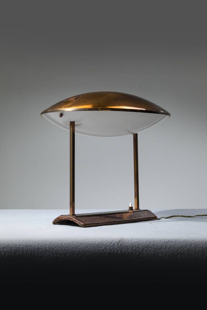 Struttura in metallo nichelato cuoio e vetro opalino. Marchio del produttore Anni '50 h cm 35x37 Difetti