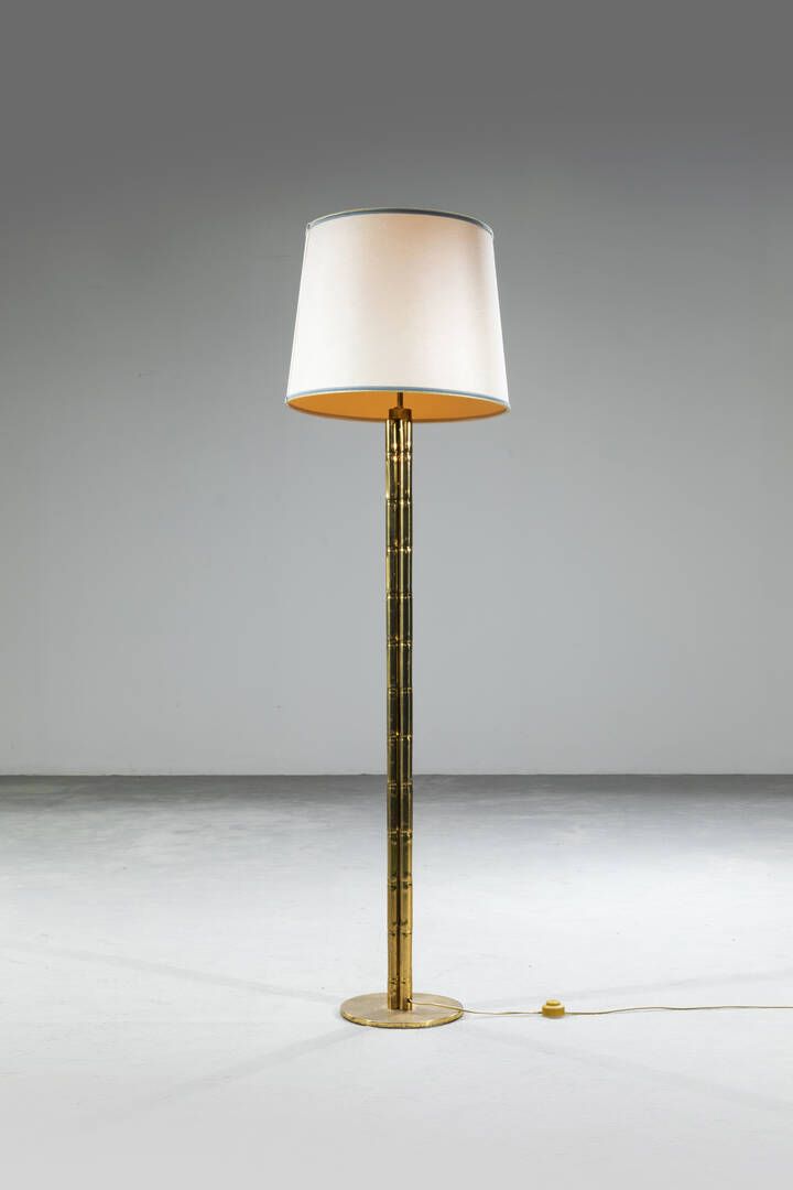 Struttura in ottone bamboo. diffusore in tessuto. Anni '60 h cm 172x50 Piccoli difetti