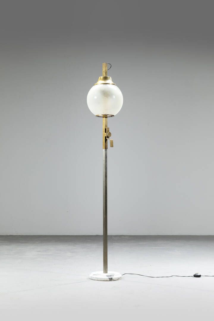 Struttura in metallo e ottone diffusore in vetro. Base in marmo Anni '60 h cm 176x30 Piccola sbeccatura e difetti