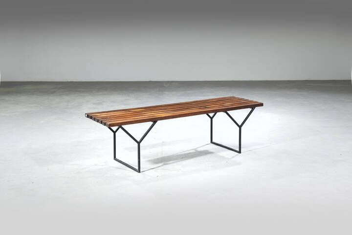 Struttura in metallo verniciato e legno. Anni '70 cm 39x140x40 Difetti
