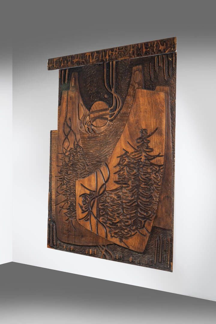 Pannello in legno scolpito e lavorato Anni '70 cm 200x162 cm 14x162 Difetti