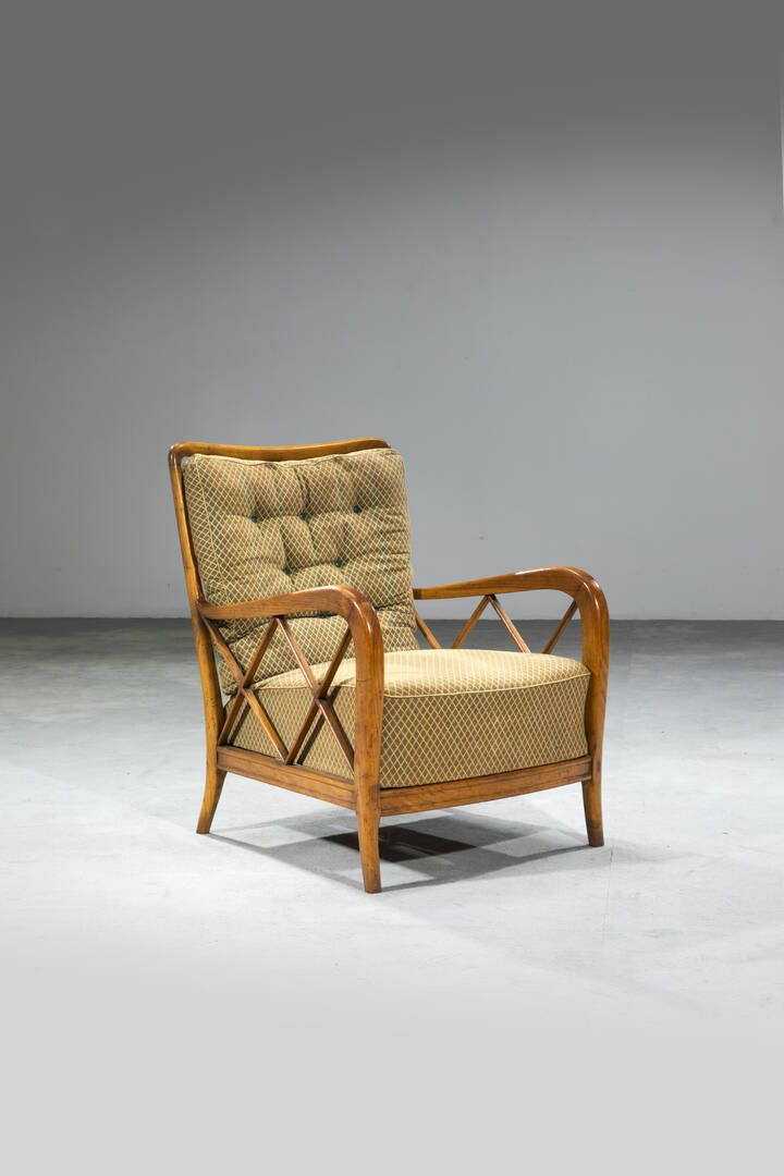 Struttura in legno imbottitura rivestita in tessuto. Anni '40 cm 82x62x70 Difetti