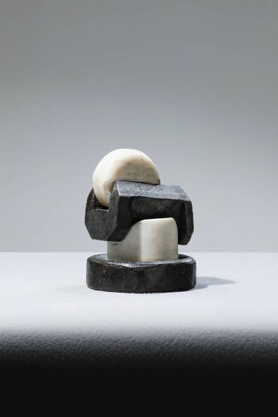 Marmo e legno tinto. Firma dell'artista e marchio del produttore Prod. Tecno anni '70 cm 20x15