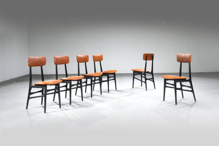Struttura in legno tinto seduta e schienale rivestiti in skai. Anni '60 cm 88x41x50 Difetti