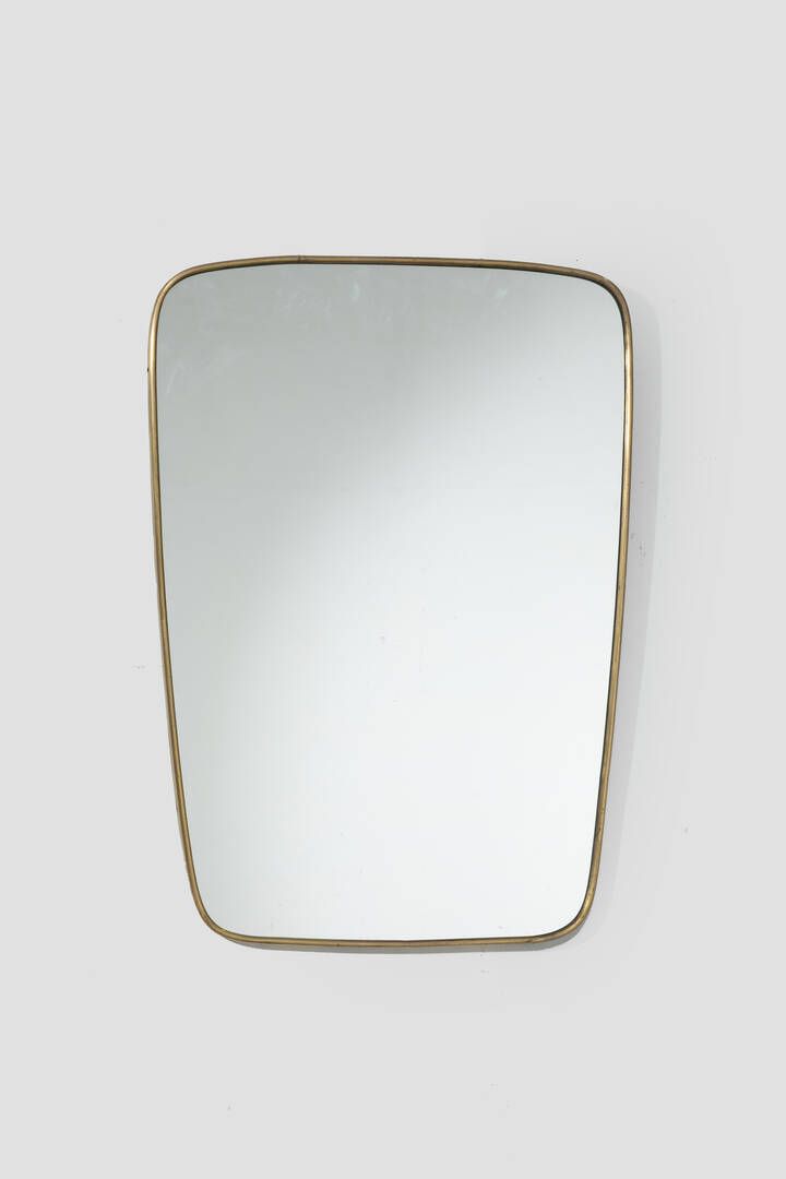 Bordo in ottone e vetro specchiato. Anni '50 cm 71x50