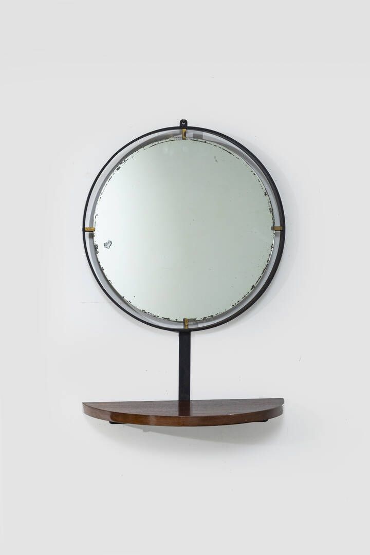 Struttura in metallo laccato vetro specchiato particolari in ottone e mensola in legno. Anni '60 cm 78x53x25 Difetti