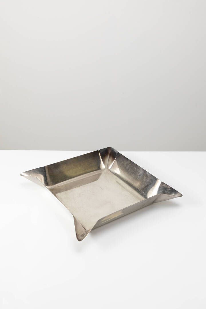 Metallo argentato. Serie 1970-1995 Firmato e datato in basso marcato sotto la base cm 6 5x38x38