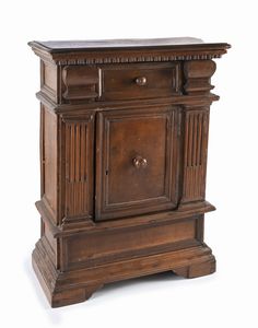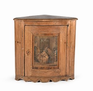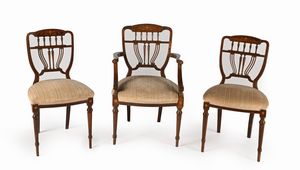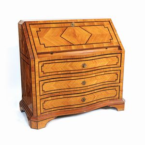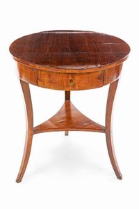 cm 77x64 con piano circolare, un cassetto nella fascia, gambe a sciabola riunite da un piano triangolare