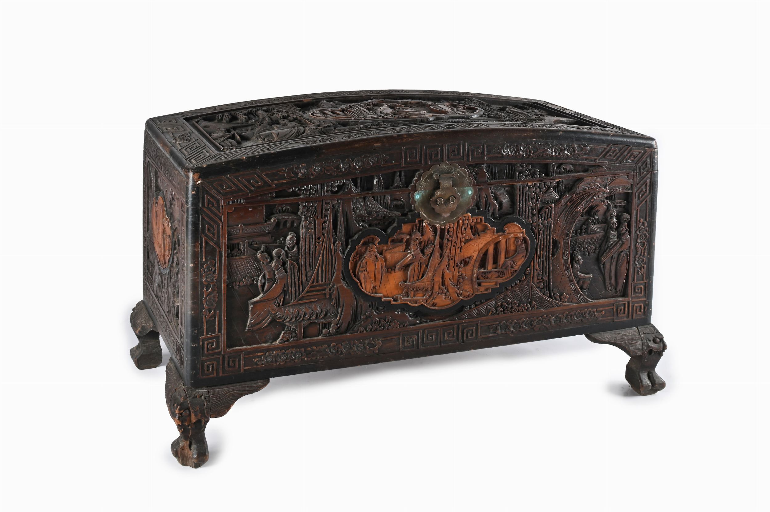 decorata sull'intera superficie da scene di genere realizzate in bassorilievo; serratura frontale in bronzo