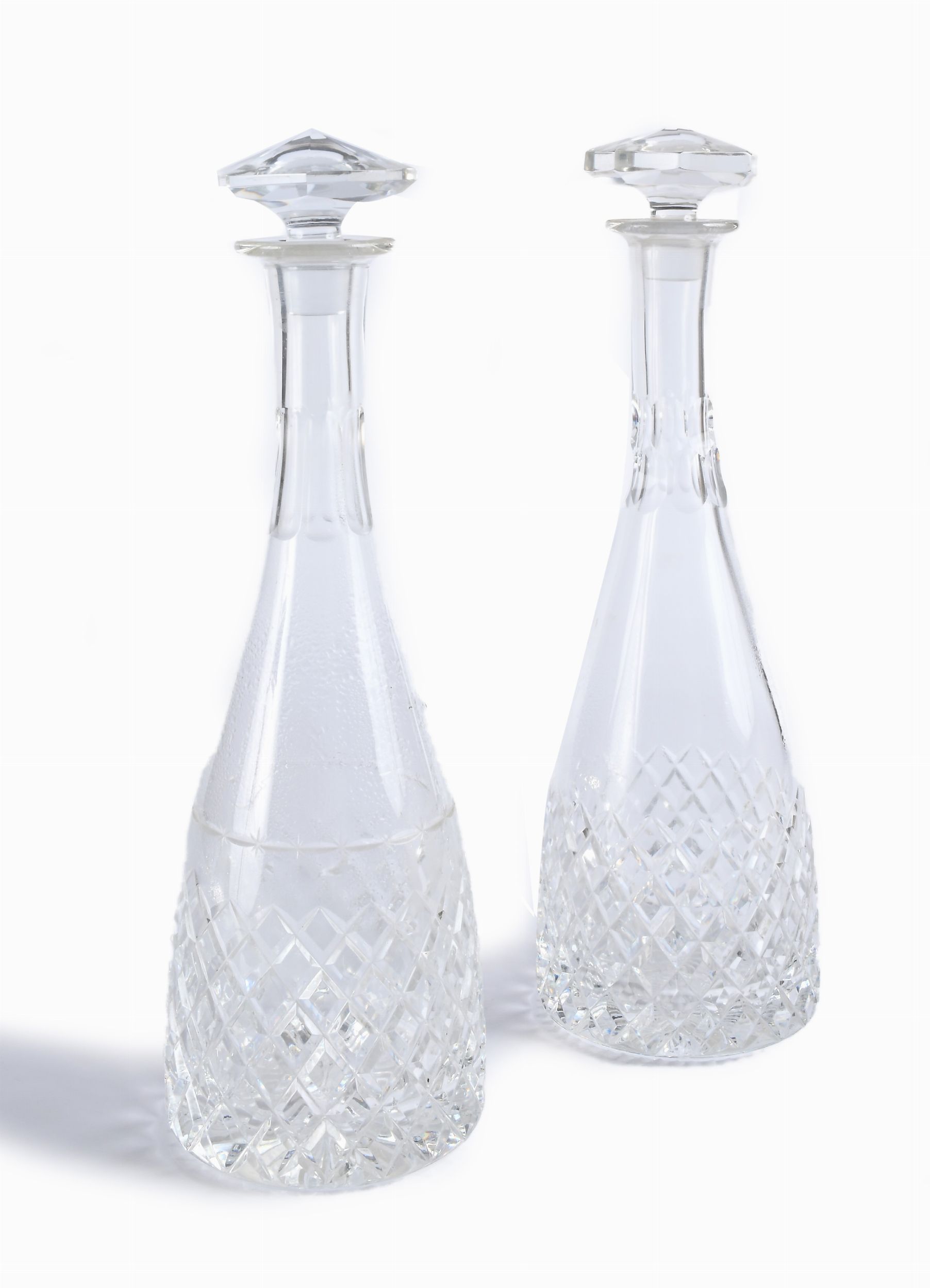 Coppia di bottiglie in cristallo con tappo ottagonale