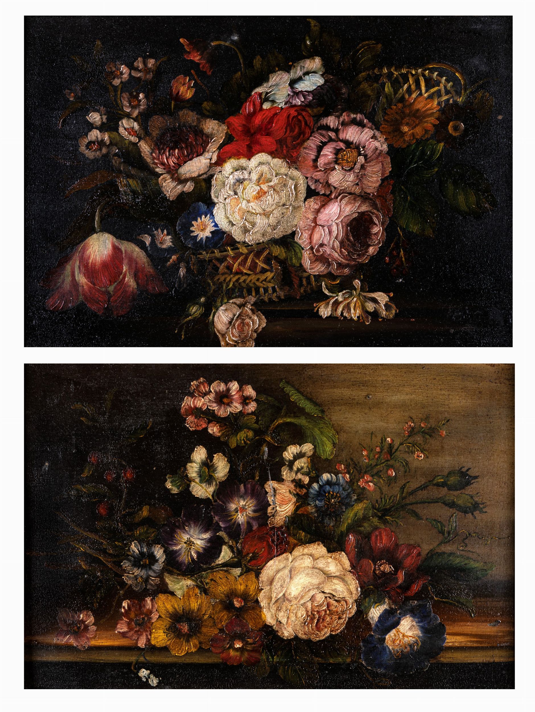 coppia di olii su tavola, cm 21x32 - in cornice cm 32x42 l'una