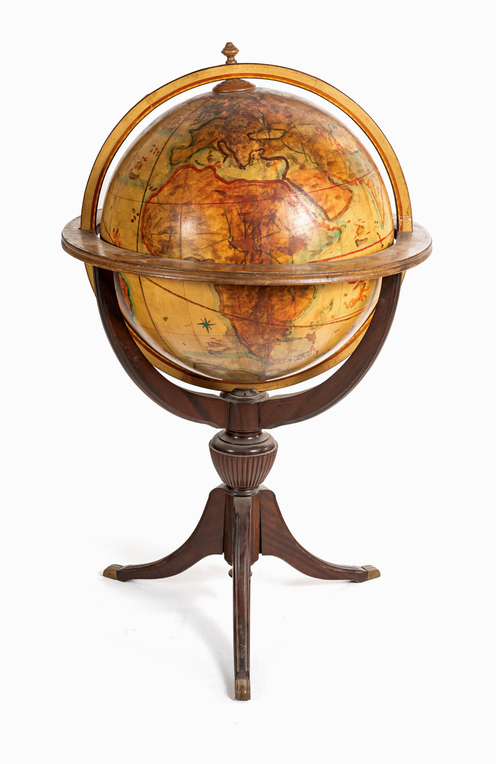Globo terrestre in legno dipinto, inizi del XX secolo