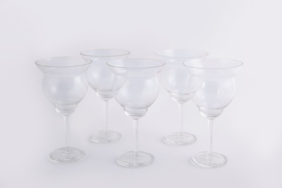 con coppa sagomata su esile stelo con piede circolare; due calici di misura lievemente inferiore