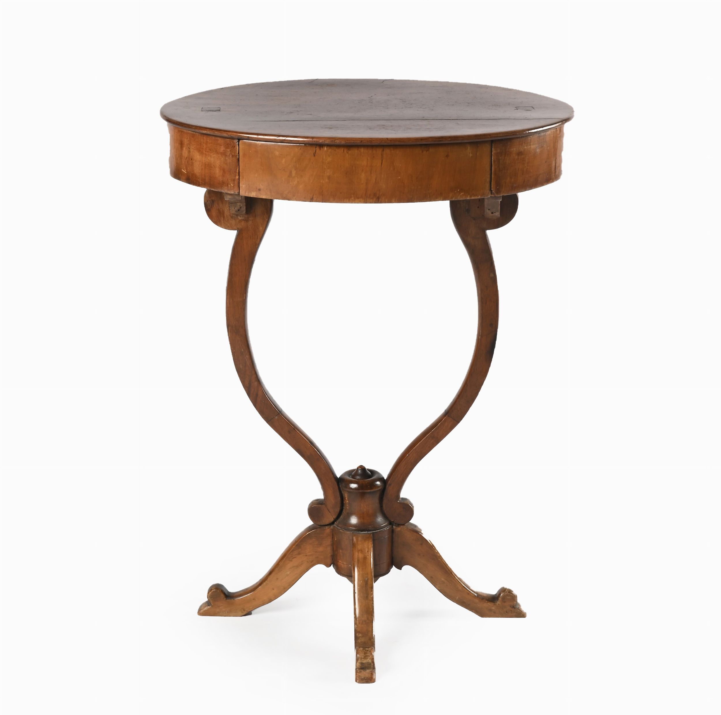 piano ovale con tiretto; gambe incurvate, tripode mosso