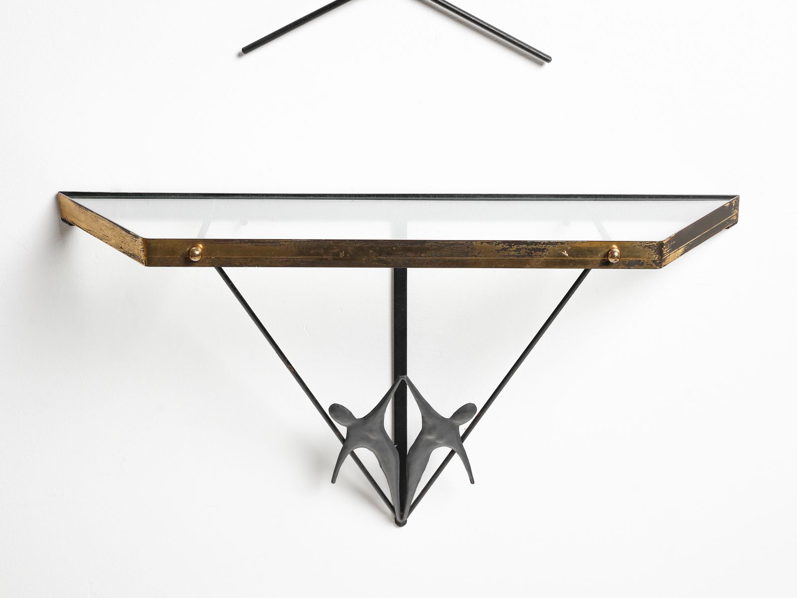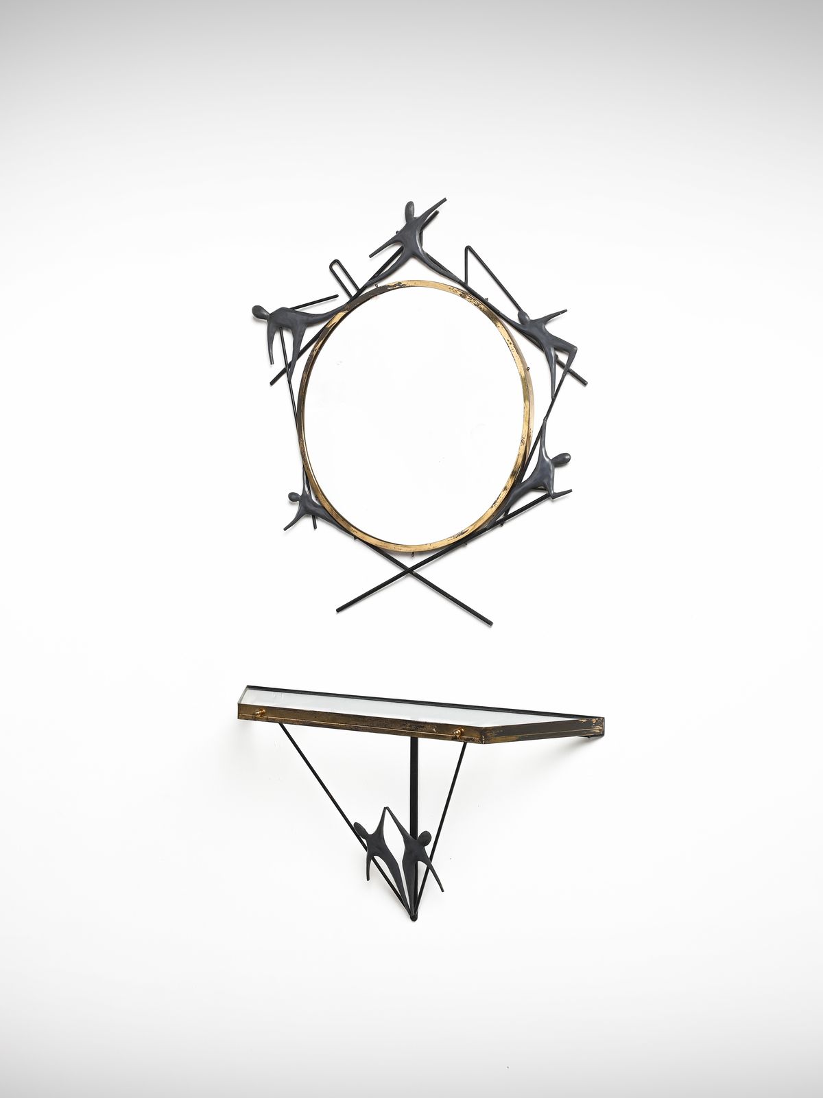 Consolle pensile con specchio da parete decorati con figure antropomorfe