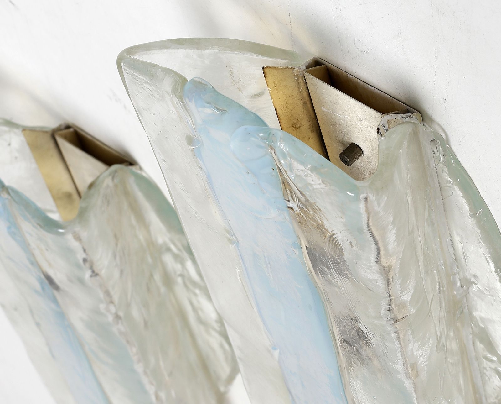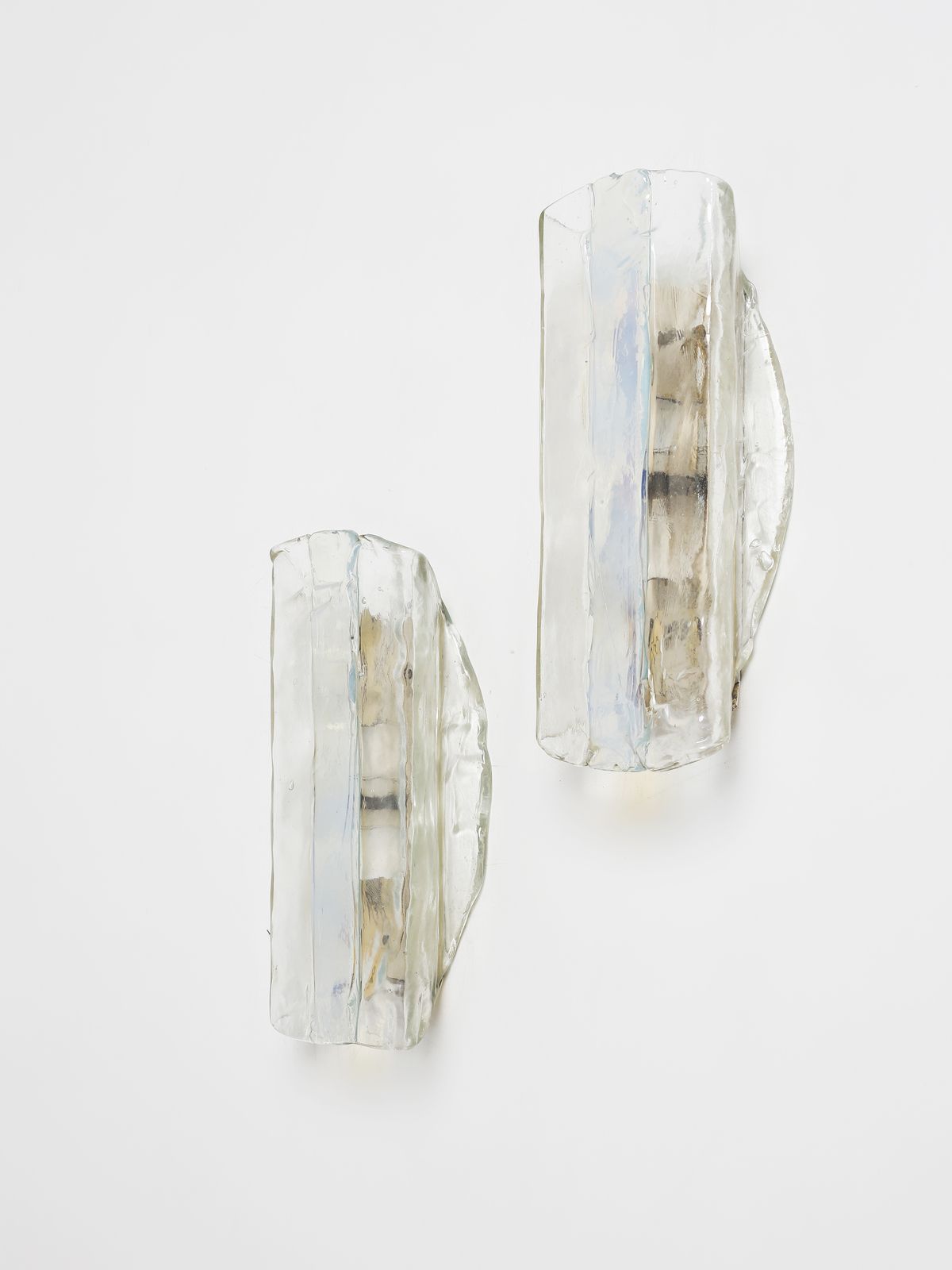 Coppia di lampade da parete composte da tre fasce di vetro lavorate in piastra e [..]
