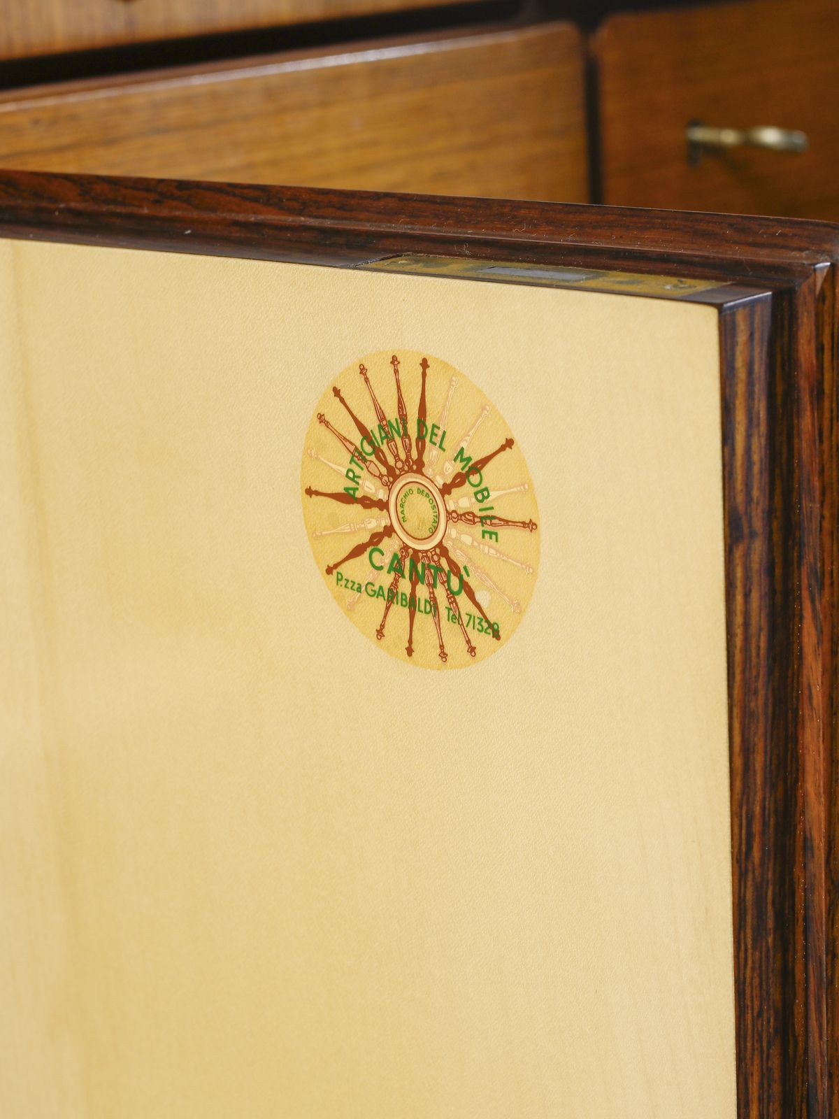Anni Cinquanta / Sessanta.Etichetta della manifattura all'interno di un'anta.