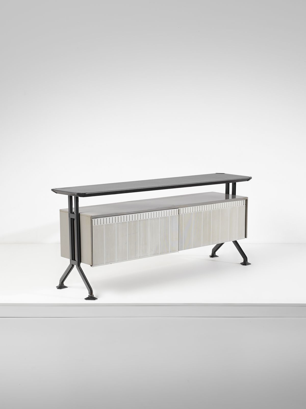 Credenza/consolle ad ante scorrevoli della serie Arco per Olivetti Arredamenti Metallici, [..]