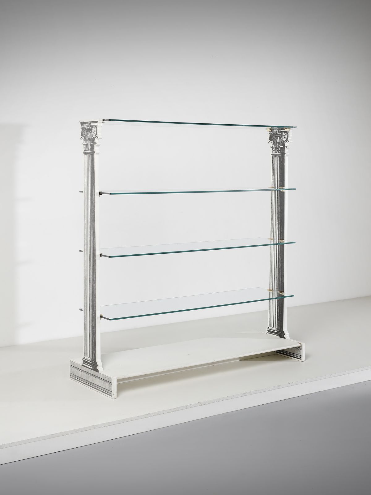 Etagere a quattro ripiani sorretti da due sagome di colonne corinzie