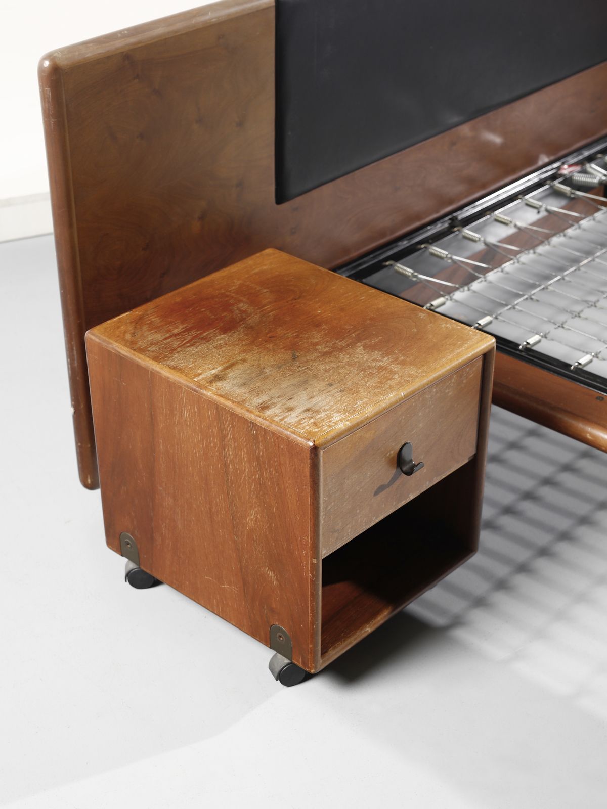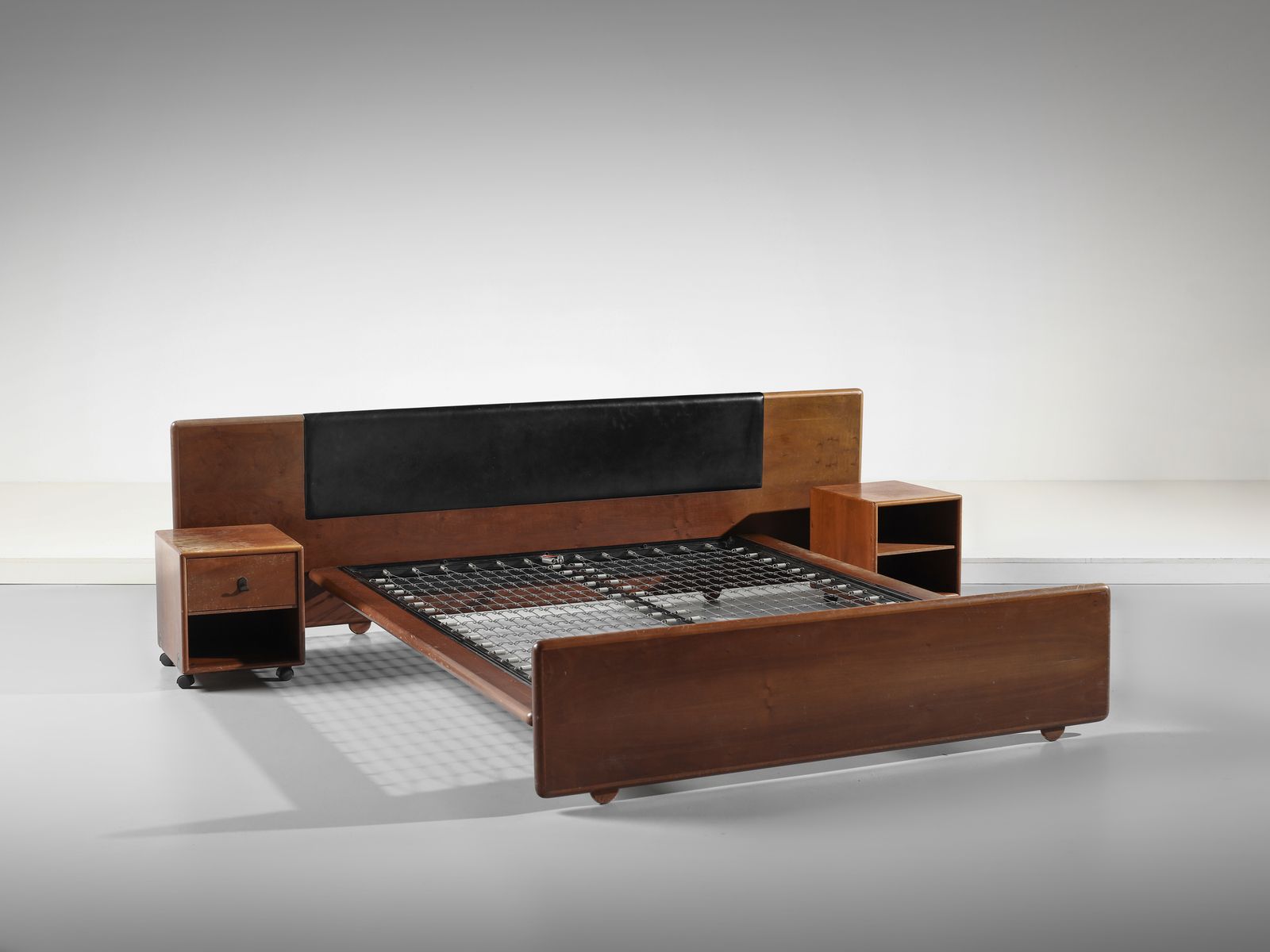 Anni Sessanta.Dimensioni: comodini 43 x 43 x 37 cm. letto 76 x 256 x 208 cm