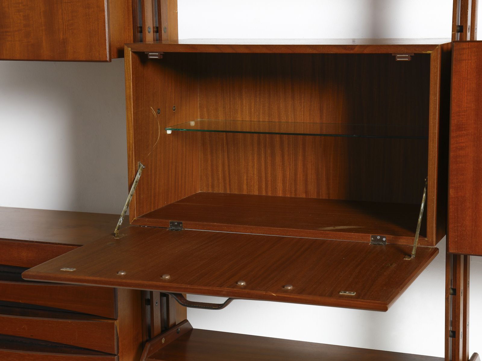Libreria a quattro campate con piani a giorno, stipi ad anta, stipi a ribalta e [..]