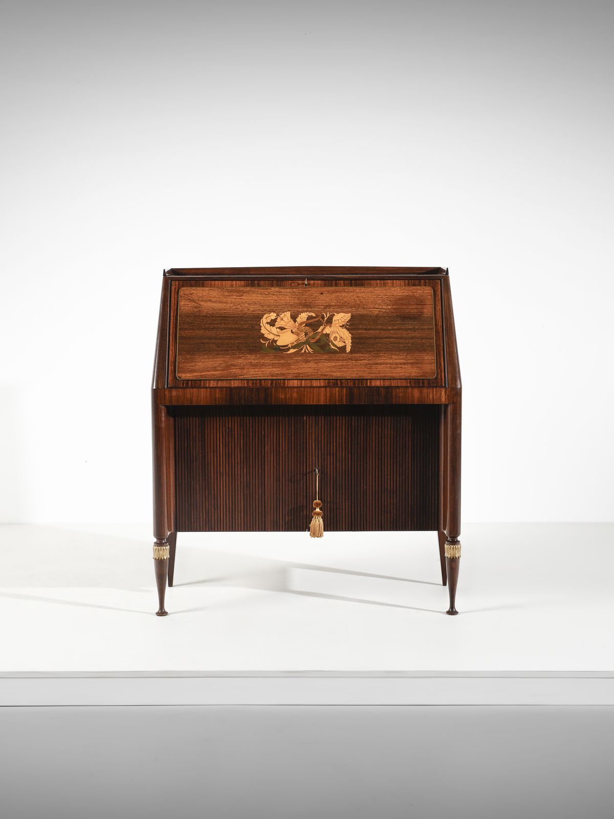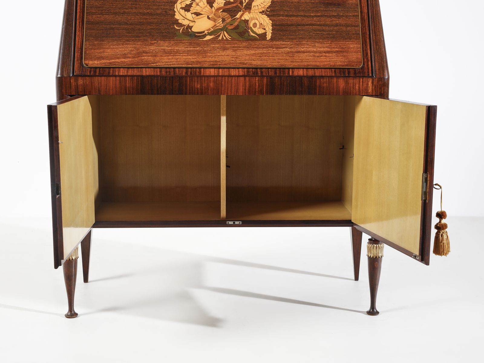 Mobile mod. 961 con alzata a ribalta celante scrittoio intarsiata su disegno di [..]