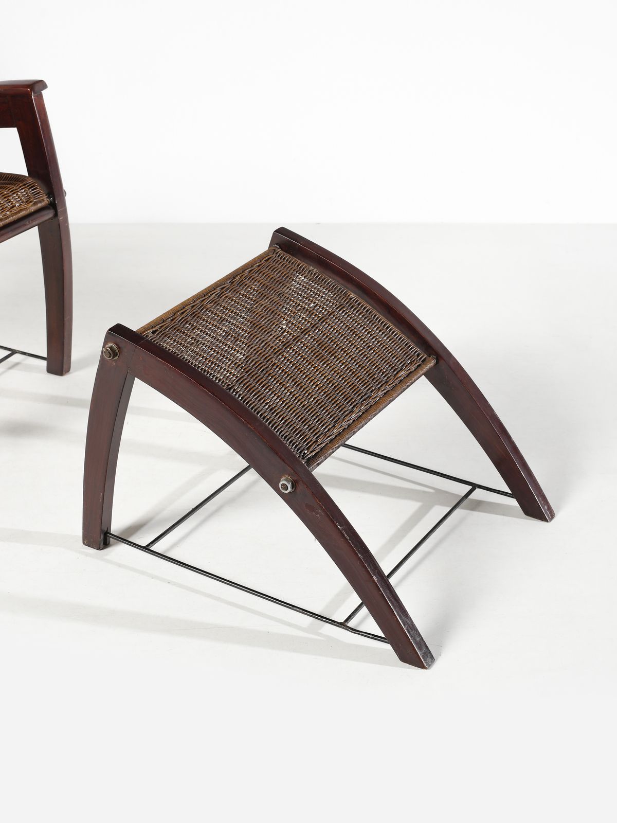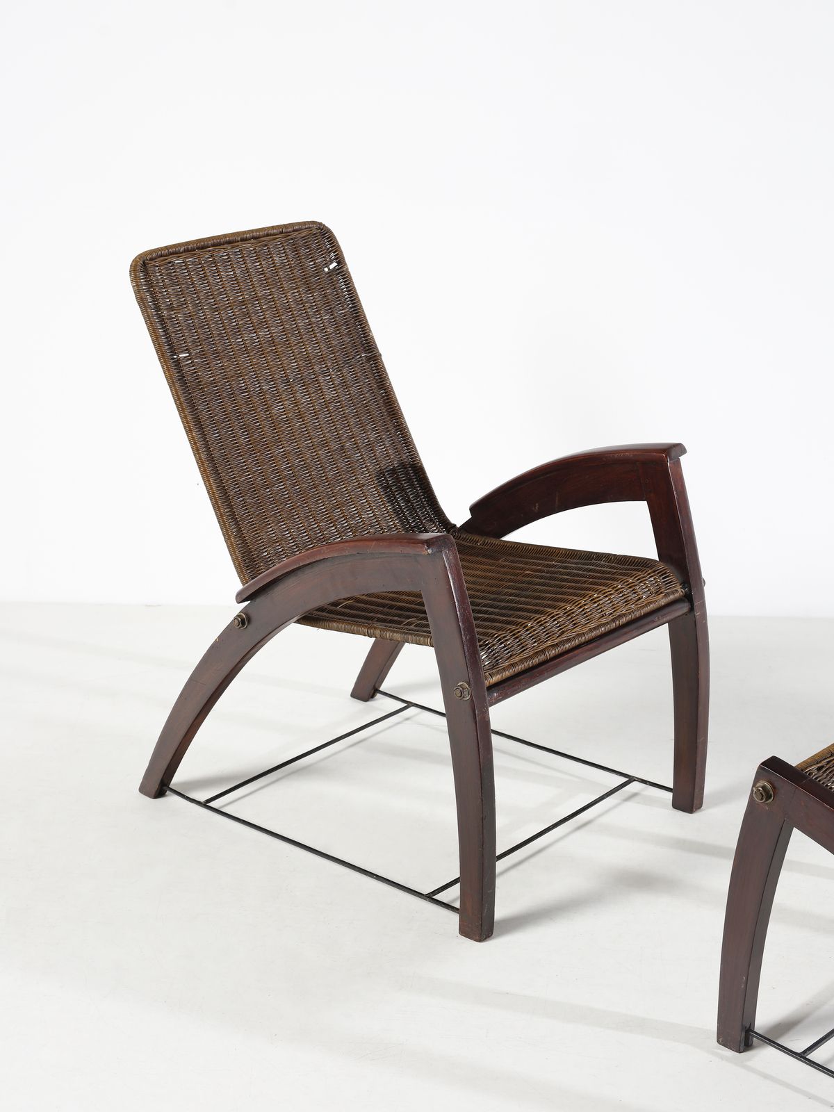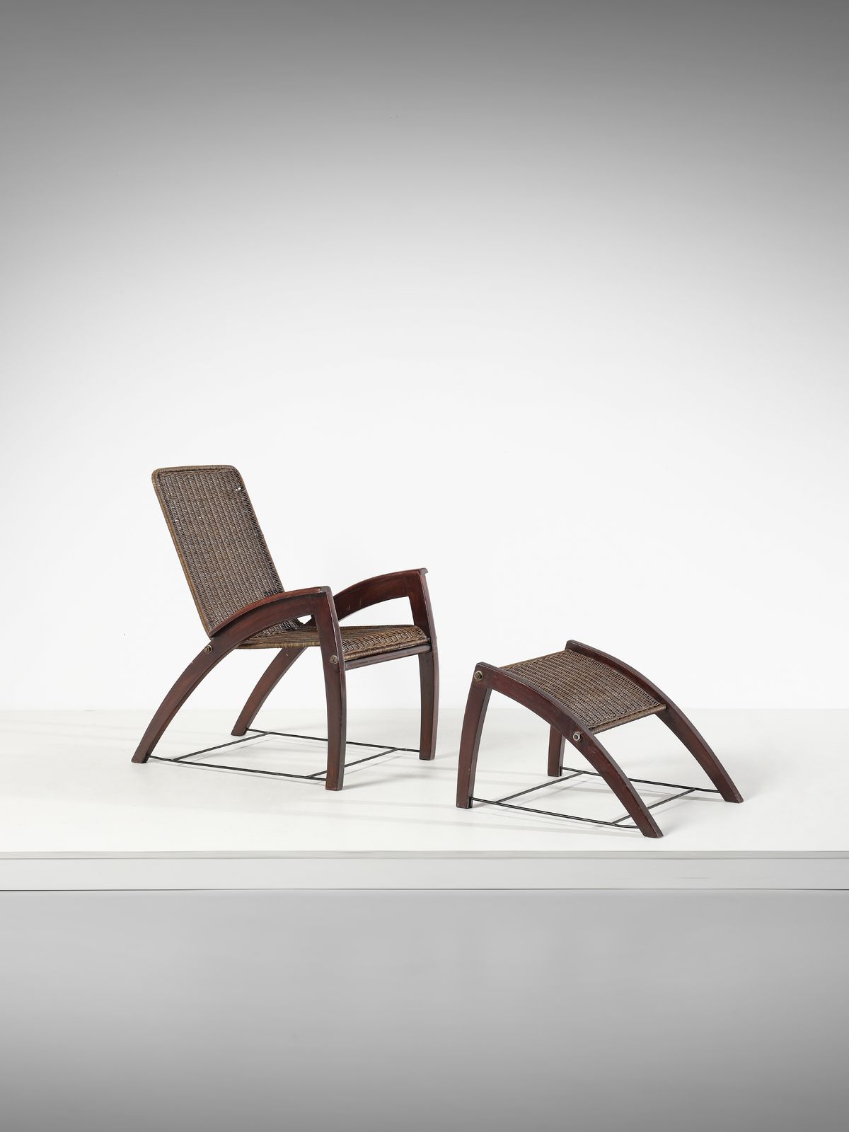 Anni Cinquanta.Dimensioni: poltrona 91,5 x 57,5 x 80 cm. poggiapiedi 42 x 55 x 64,5 cm