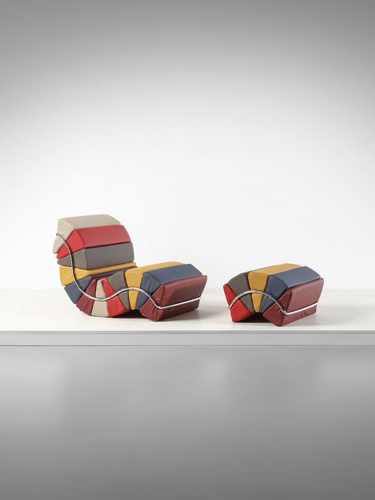 Poltrona con poggiapiedi mod. Triangoli per Mobilquattro/Delta, Italia