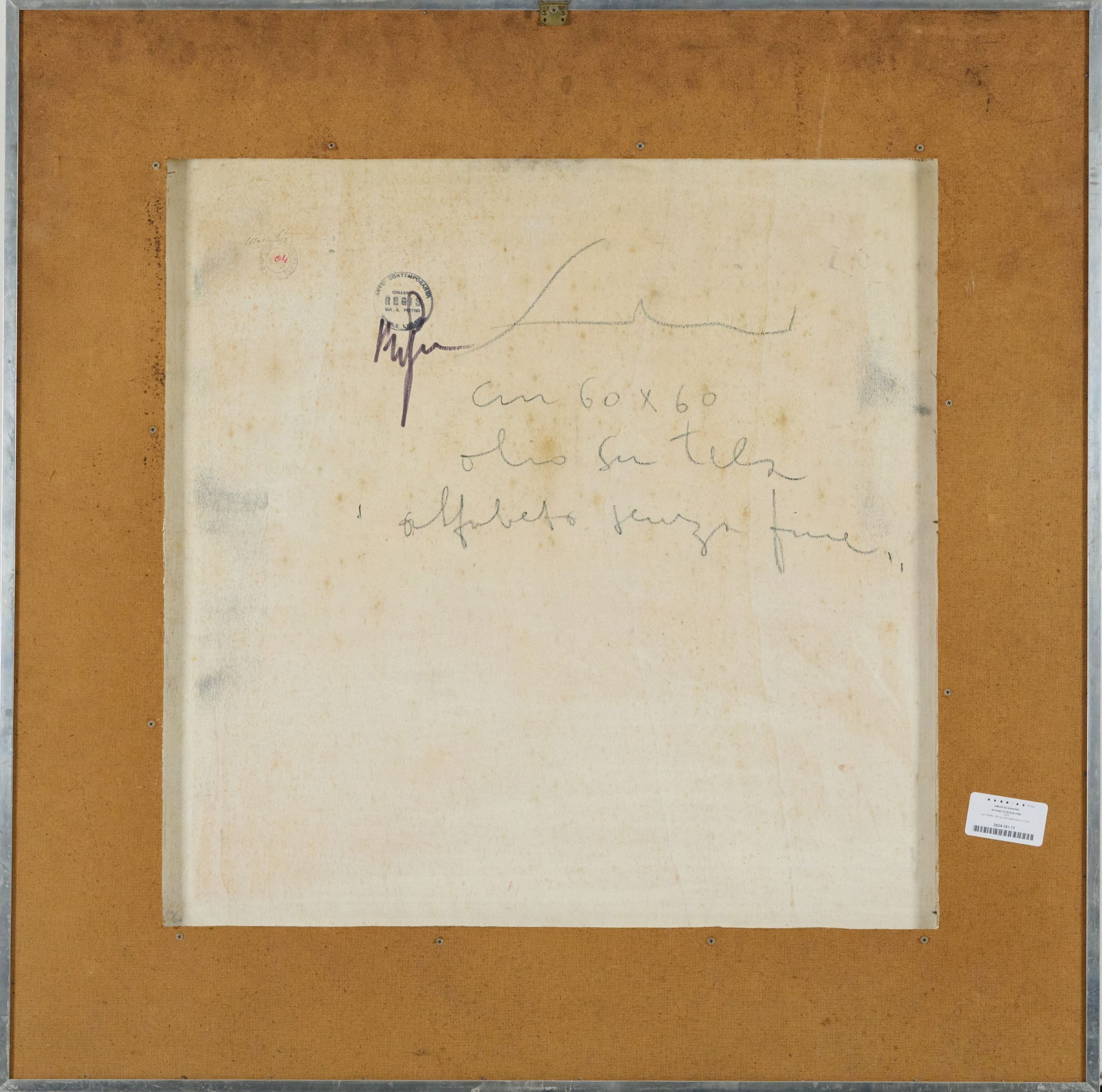 1974 Firmato in basso a destra. Sul verso: firma e titolo. Timbro 'Galleria Regis Arte Contemporanea', Finale Ligure.