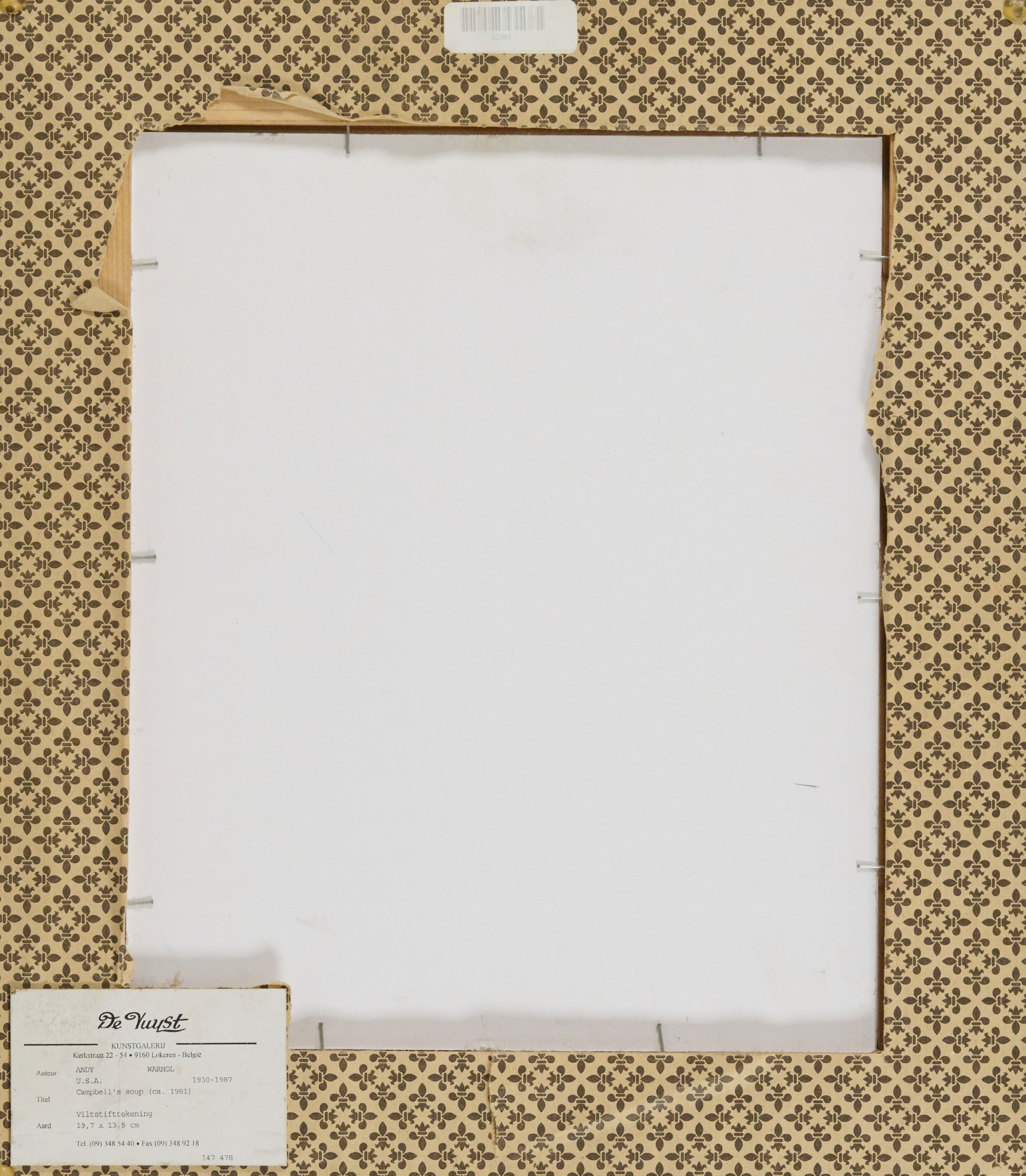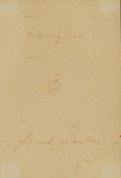 Pennarello su carta, cm. 19,7x13,5 1981 c.a. Firmato in basso al centro. Sul verso: etichetta 'De Vuyst', con descrizione. Opera eseguita a Bruxelles nel 1981 in occasione della mostra a 'Palais des Beaux Arts' nella quale Warhol esponeva assieme a Roland Delcol e Paul Delvaux.