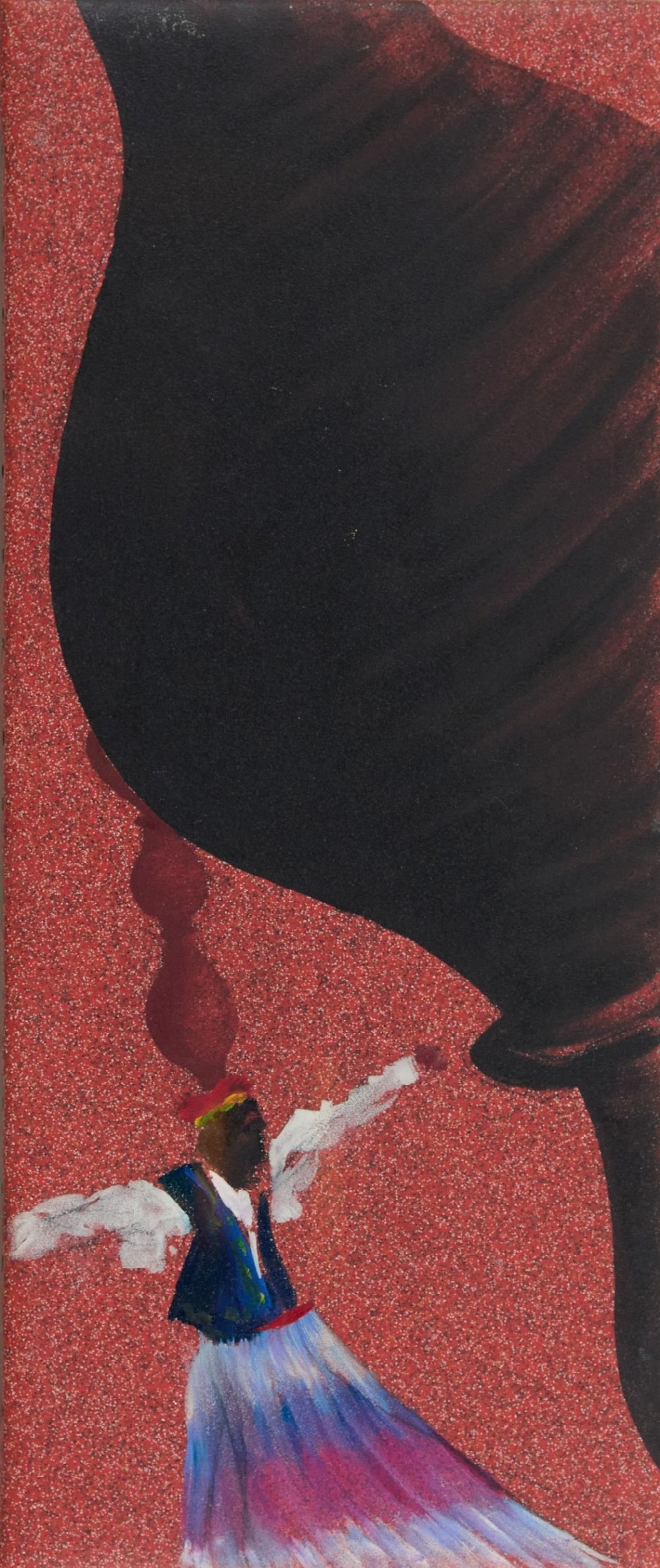 Acrilico su linoleum, cm. 60x25 in teca di plexiglas