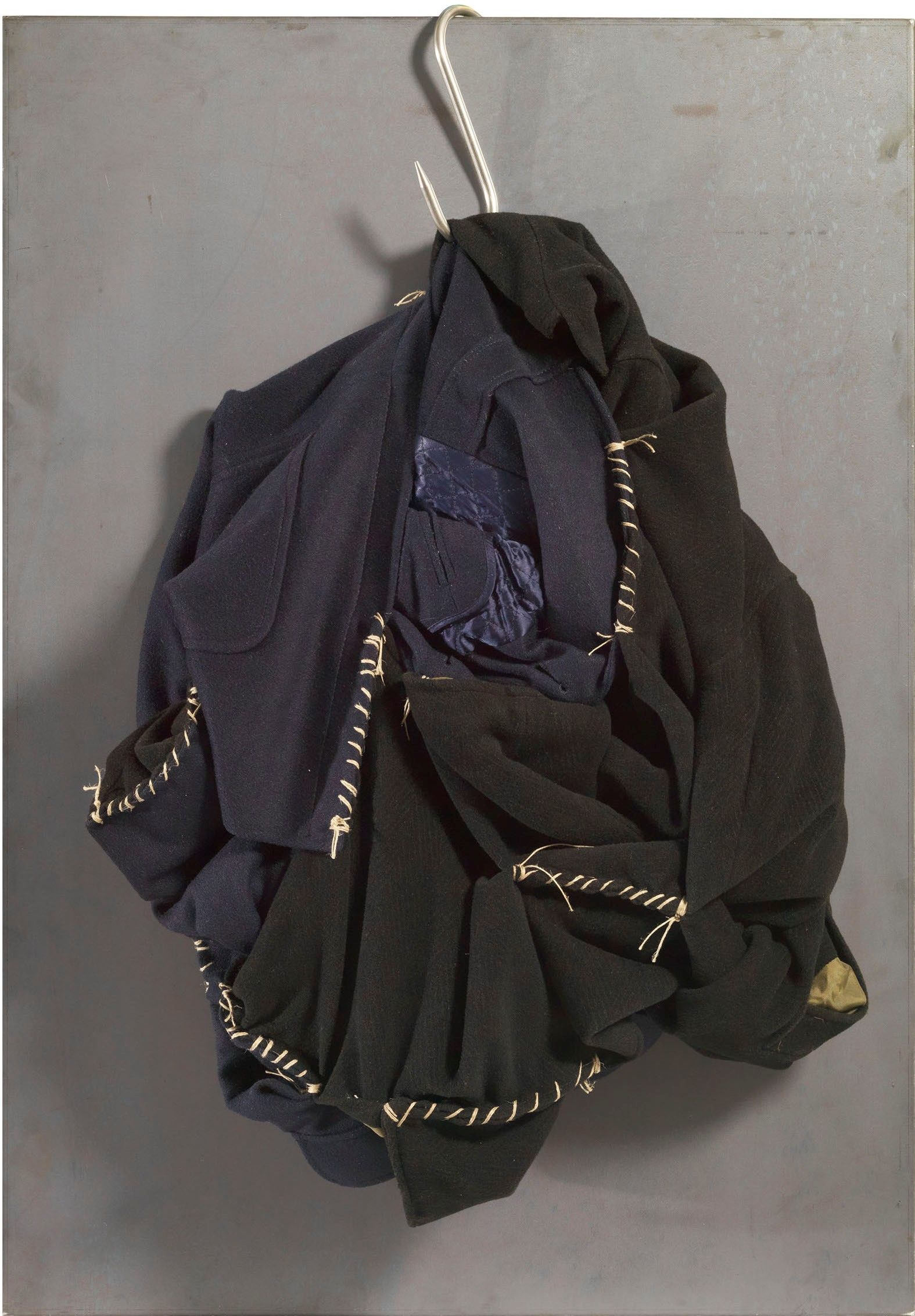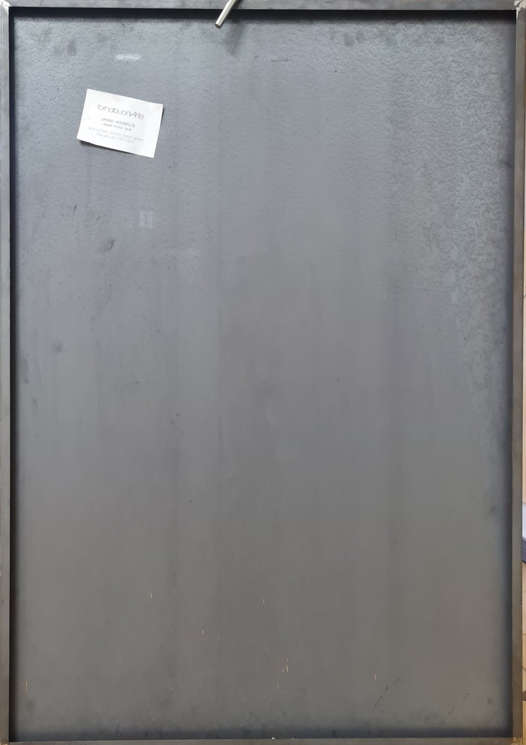 Lamina di ferro, tessuto, spago e gancio d'acciaio, cm. 100x70x25