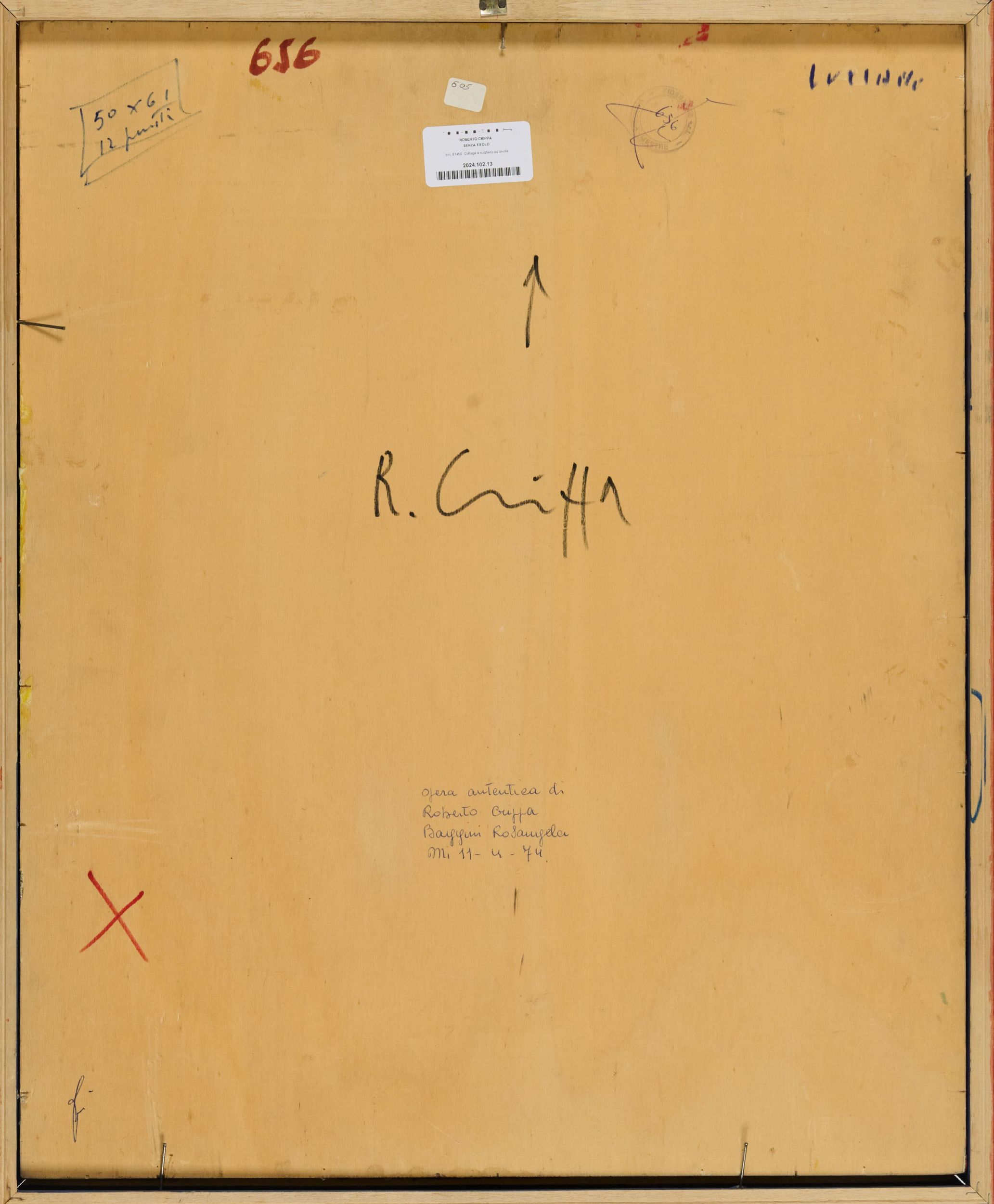 Sul verso: firma, timbro di provenienza e dichiarazione di autenticità a cura di Rosangela Baggini datata 1974.