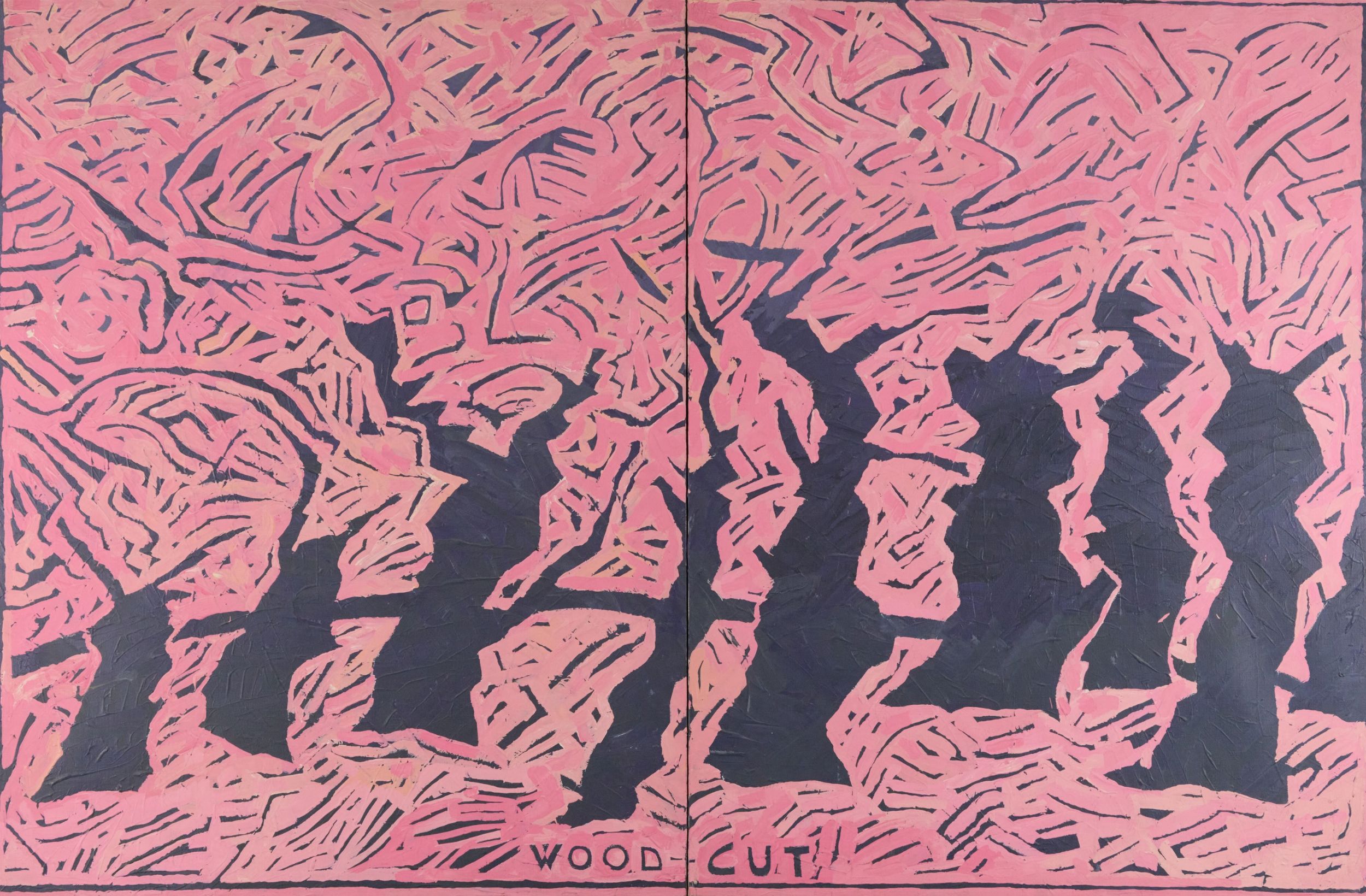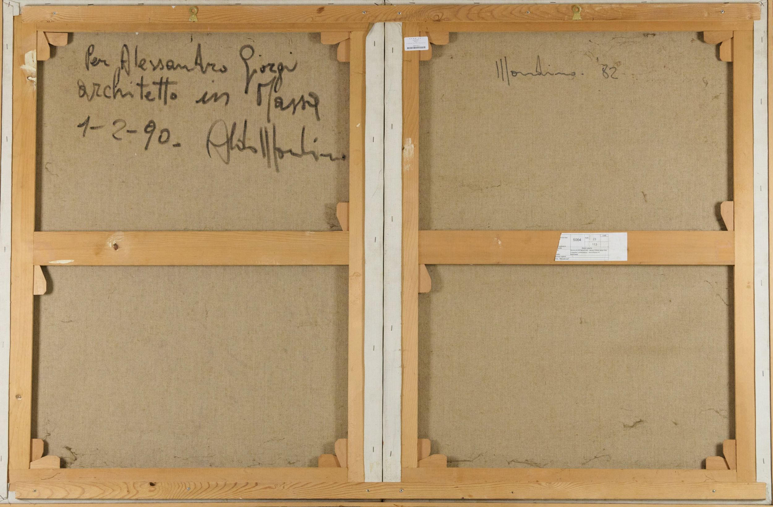 Tecnica mista e olio su doppia tela di, cm. 120x90 cad. una, per un totale di cm. 120x180.