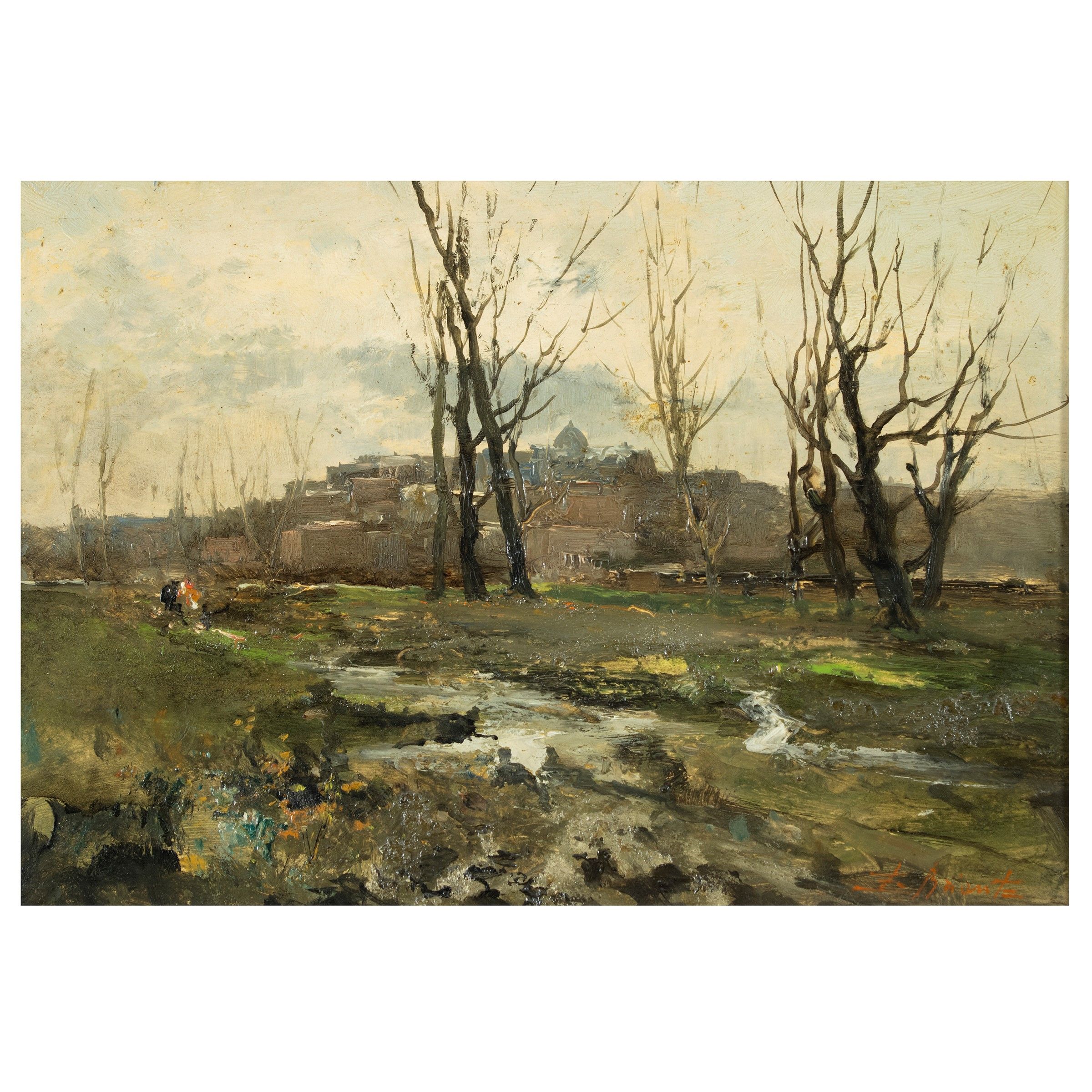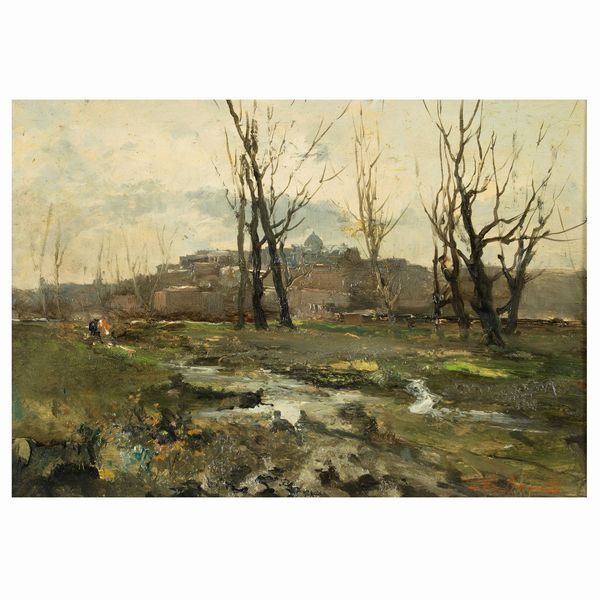 Napoli 1901 - Roma 1971 'Paesaggio autunnale', olio su faesite, firmato in basso destra, entro cornice