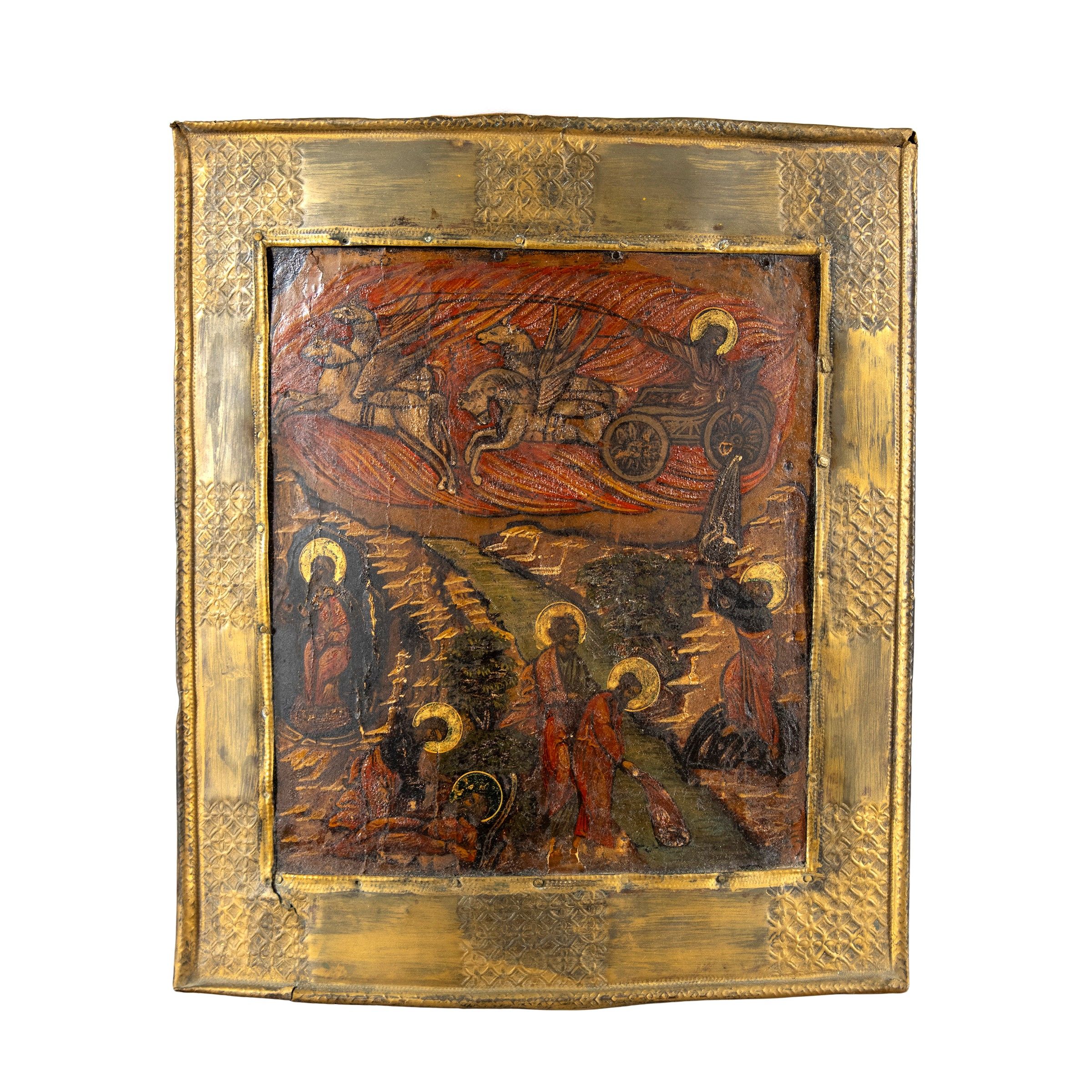 Russia, XIX-XX Sec. tempera su tavola, cornice in metallo dorato