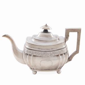 h. 35 cm. Londra 1861 orafo George Angell, corpo in vetro rosso con montatura in argento cesellato con motivi [..]