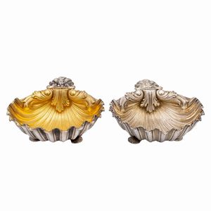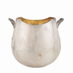 h. 36 cm. Italia, bollo Fascio anni 30-40 orafo Fernando Genazzi, Firenze, basi circolari, steli torniti con bracci [..]