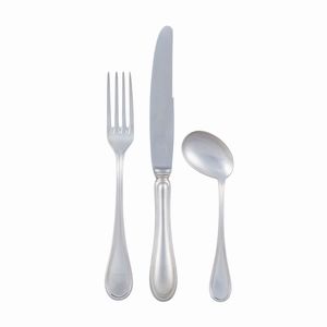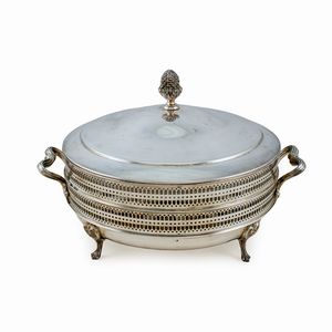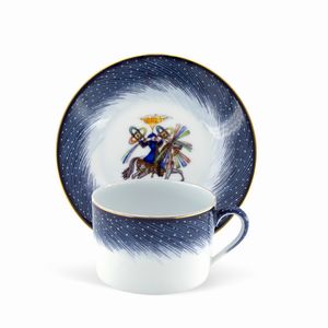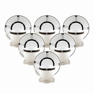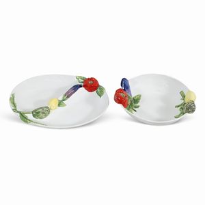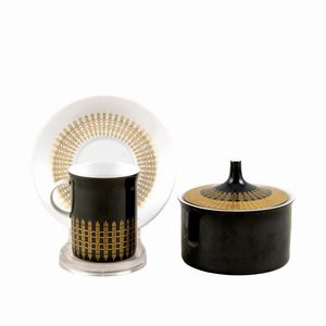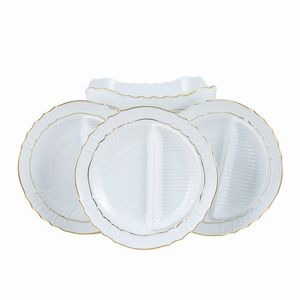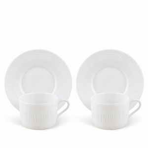 h. 5,5 - d. 14,5 cm. Francia, XX Sec. collezione 'Egèe' in porcellana bianca decorata, marchio della produzione, [..]