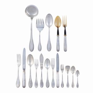 peso complessivo 4618 gr. Italia, XX Sec. orafo Clementi, Bologna, composto da: 12 forchette 12 coltelli 12 cucchiai [..]