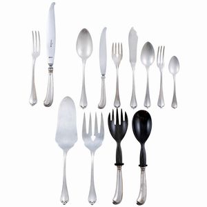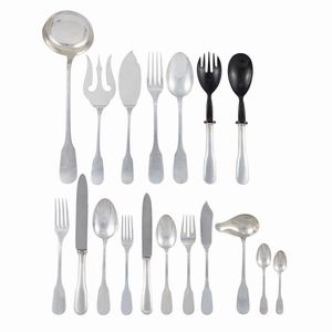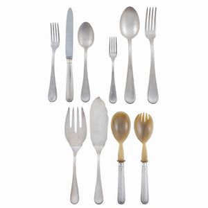 Italia, XX Sec. modello San Marco, composto da: 36 forchette 18 cucchiai 17 coltelli 12 forchette da pesce 12 [..]