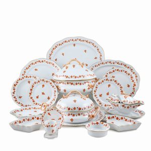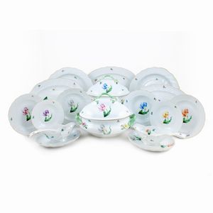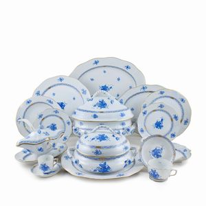 Ungheria, XX Sec. decoro 'Apponyi blu', in porcellana policroma su fondo bianco, bordo Ozier e profilo dorato, [..]