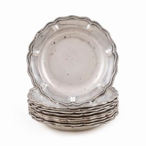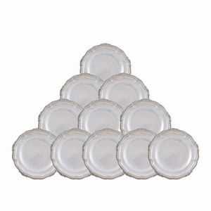 d. 27 cm. Italia, XX Sec. orafo Ricci & C., Alessandria, forma circolare a corpo liscio, peso complessivo 6153 [..]