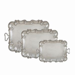 39x56 cm. - 32x48 cm. - 24x36 cm. Venezia, XIX Sec. forma rettangolare con bordo sagomato, peso complessivo 4436 [..]
