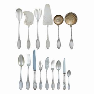 peso complessivo 13.910 gr. Francia, 1880 circa orafo Boulenger, manici decorati con motivi di nodi d'amore e [..]