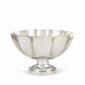 22x32 cm. Roma, 1969 base circolare con bordo sagomato, coppa polilobata a corpo liscio, firmata, peso 2290 gr [..]