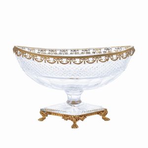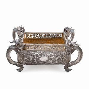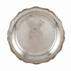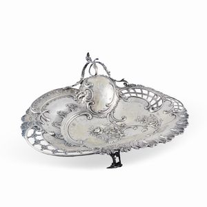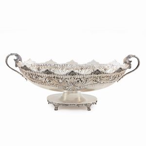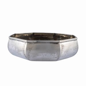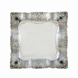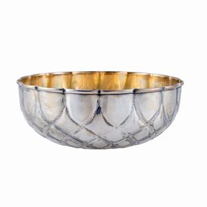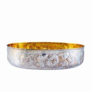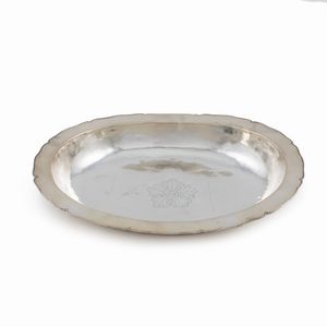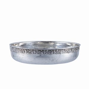 31,5x22 cm. Italia, XX Sec. orafi F.lli Zaramella, Padova, corpo liscio con profilo godronato, peso 475 gr.