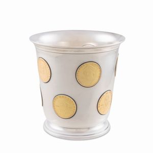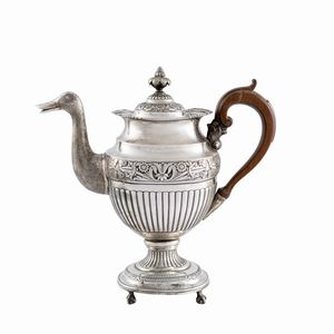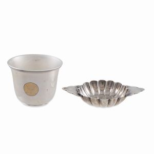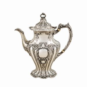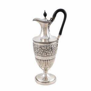 34x47x47 cm. Italia, bolli fascio orafo Ditta F.lli Leone Milano, fusto tornito con bracci a doppia voluta, base [..]