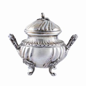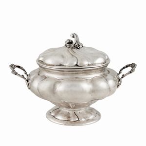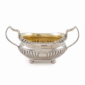 41x37,5 cm. Italia, XX Sec. orafo Piero Arioli, Milano, corpi baccellati e cesellati con palmette Impero e ghirlande [..]